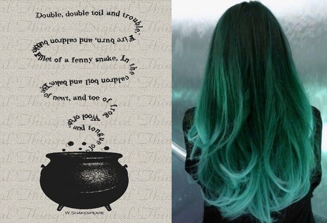 Now, believe me when I say that we were quite a sight as the three witches. Once we were dressed in our costumes, people all over the school couldn’t help but stop and stare. I wore a long, black, velvet dress and had dyed my hair green and teased it into an abundant mass. (I have very thick hair, so that was rather easy to achieve – and I think it’s safe to say that I took big hair to the next level.) My two friends, who were playing the second and third witches, wore long, navy, velvet dresses and had dyed their hair blue and red, respectively. Add some make-up to the equation and you could barely recognise us for the respectable schoolgirls we had been just moments before. No wonder people were gaping at us.