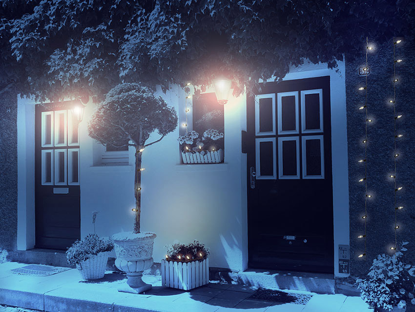 She marched up to the front door and pulled on it, but it didn’t budge. “That’s strange,” she thought as she jiggled the handle and tried to shake the door open. Then she stood back and suddenly noticed there were fairy lights in the garden. “Oh how sweet!” she thought in delight. “I didn’t know my son put those up. What a nice surprise!”
